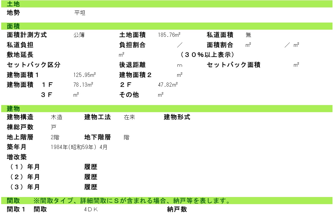 | 土地面積 | 69.89㎡及び、(17.89㎡の2分の1)(21.14坪) |