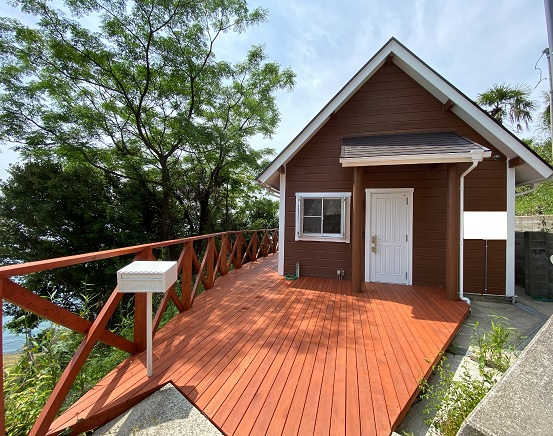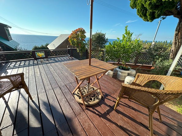| リフォーム済みの綺麗な古民家で高台にありバルコニーから海が見える離れ付の物件です