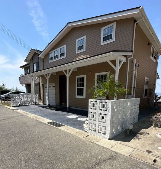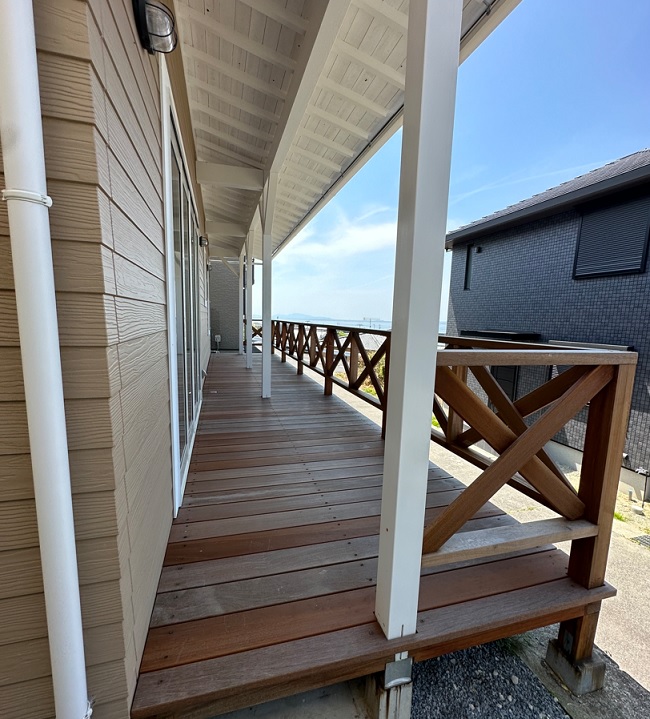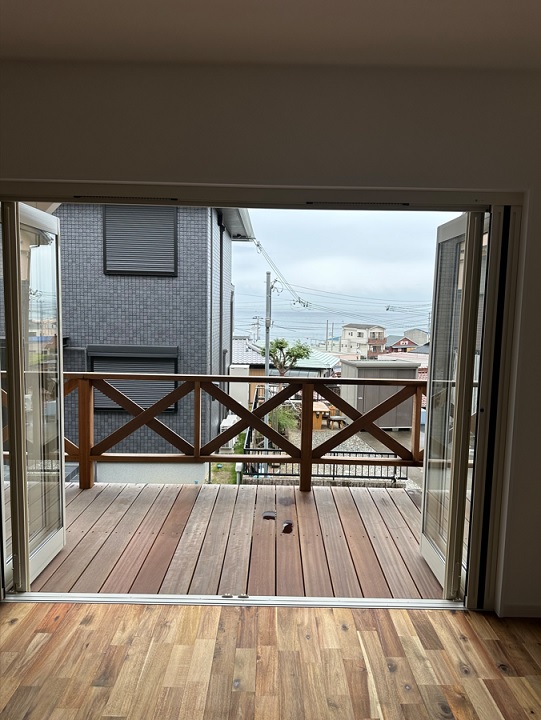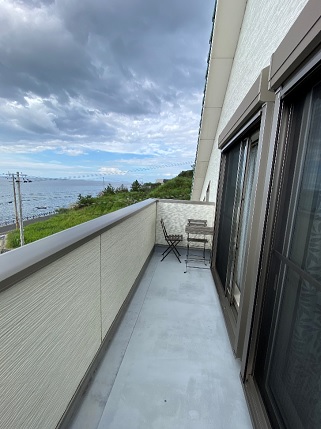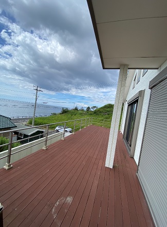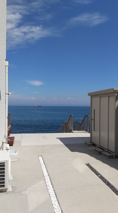 鉄筋コンクリートの家で頑丈です バルコニーから海が見えます